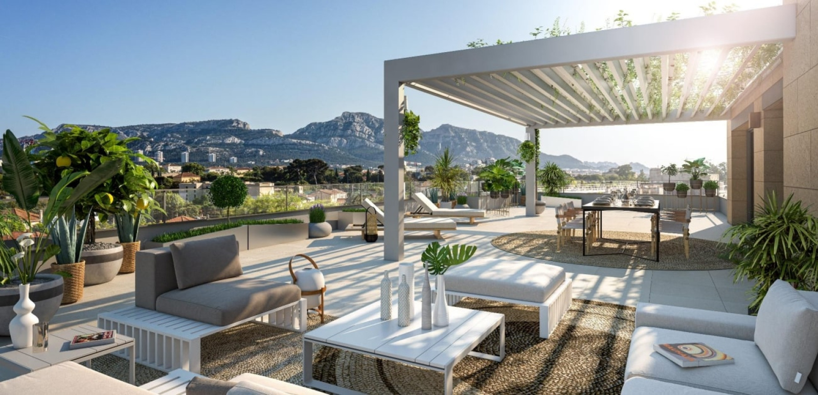 Les prestations : Les prestations sont de haut standing avec des équipements fiables, moins énergivores : les menuiseries sont en aluminium laqué, les volets roulants sont électriques à lames aluminium, à commande individuelle et centralisée, la pompe à chaleur est collective pour le rafraîchissement, le chauffage et l’eau chaude, présence de panneaux photovoltaïques…
