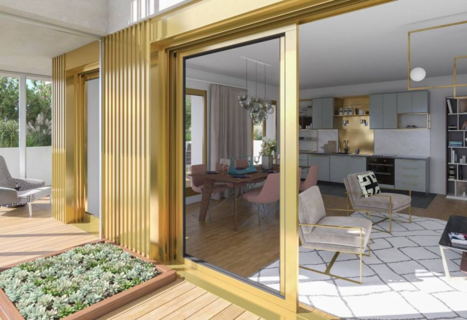 Du vaste studio au 5 pièces familial, réalisés de plain-pied ou en duplex aux étages élevés, les appartements bénéficient de plans optimisés, notamment d’une cuisine ouverte pour plus de convivialité. Les intérieurs se parent de grandes baies vitrées permettant une lumière naturelle omniprésente. Chaque logement est connecté pour permettre de piloter, de chez soi ou à distance, l'éclairage, le chauffage et le système d'alarme.