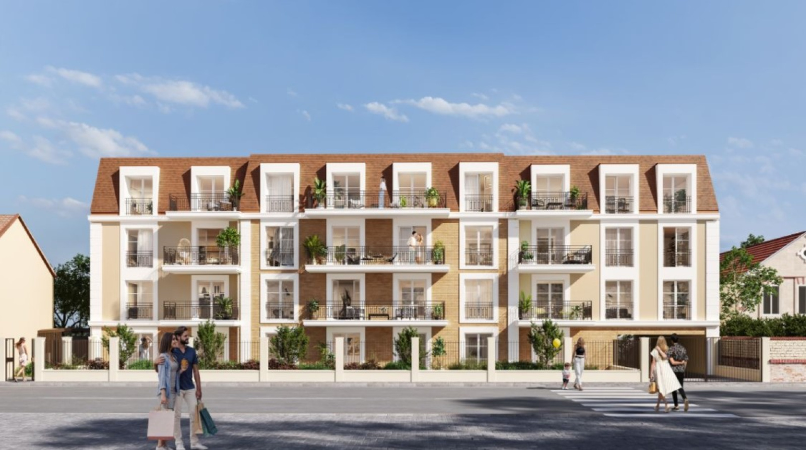 La résidence : A la lisière du Vésinet, cette résidence propose une adresse agréable, son architecture s’inspire des codes classiques de la ville avec des façades en briquettes de teinte sable réhaussées par endroits par un enduit beige et des corniches blanches traditionnelles. Conçus pour s’adapter à tous les styles de vie, les appartements déclinés du 2 au 5 pièces bénéficient d’une exposition étudiée. En cœur d’îlot, des appartements 4 pièces duplex d’exception sont conçus comme des maisons avec jardins privatifs engazonnés et des terrasses.…