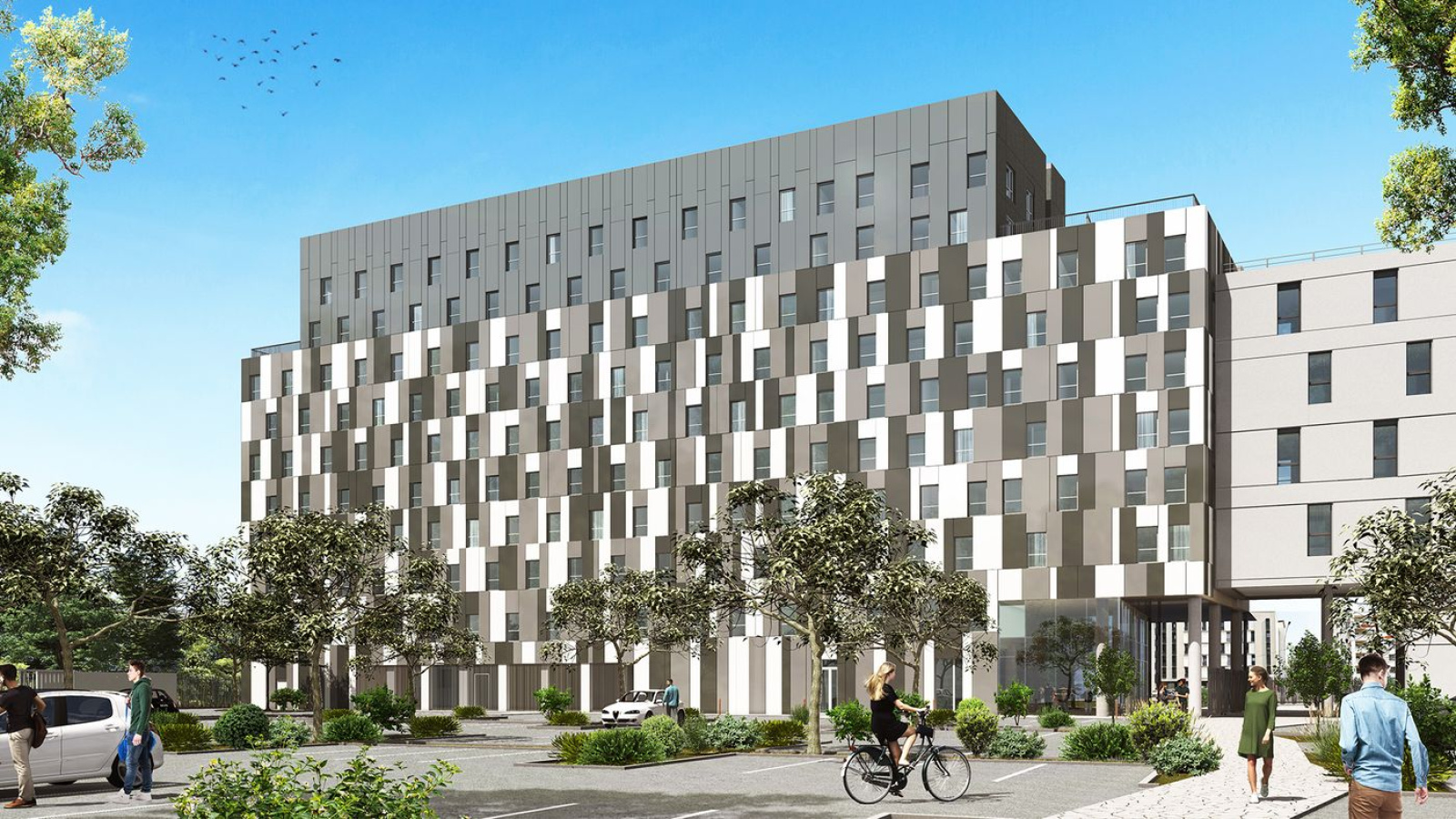 La résidence : Inspirée des quartiers d’affaires, l’architecture de la résidence est audacieuse. Située à seulement 10 minutes à pied de la gare de Massy et aux portes de la capitale à seulement 20 kilomètres de Paris, la résidence offre de confortables logements, pratiques et adaptés allant du T1 / T1 Bis au T2 et T2 duo. La résidence disposera d’une bibliothèque partagée, d’une laverie, de bornes wifi, d’un espace coffee, d’un gardien, de boîtes aux lettres connectées …